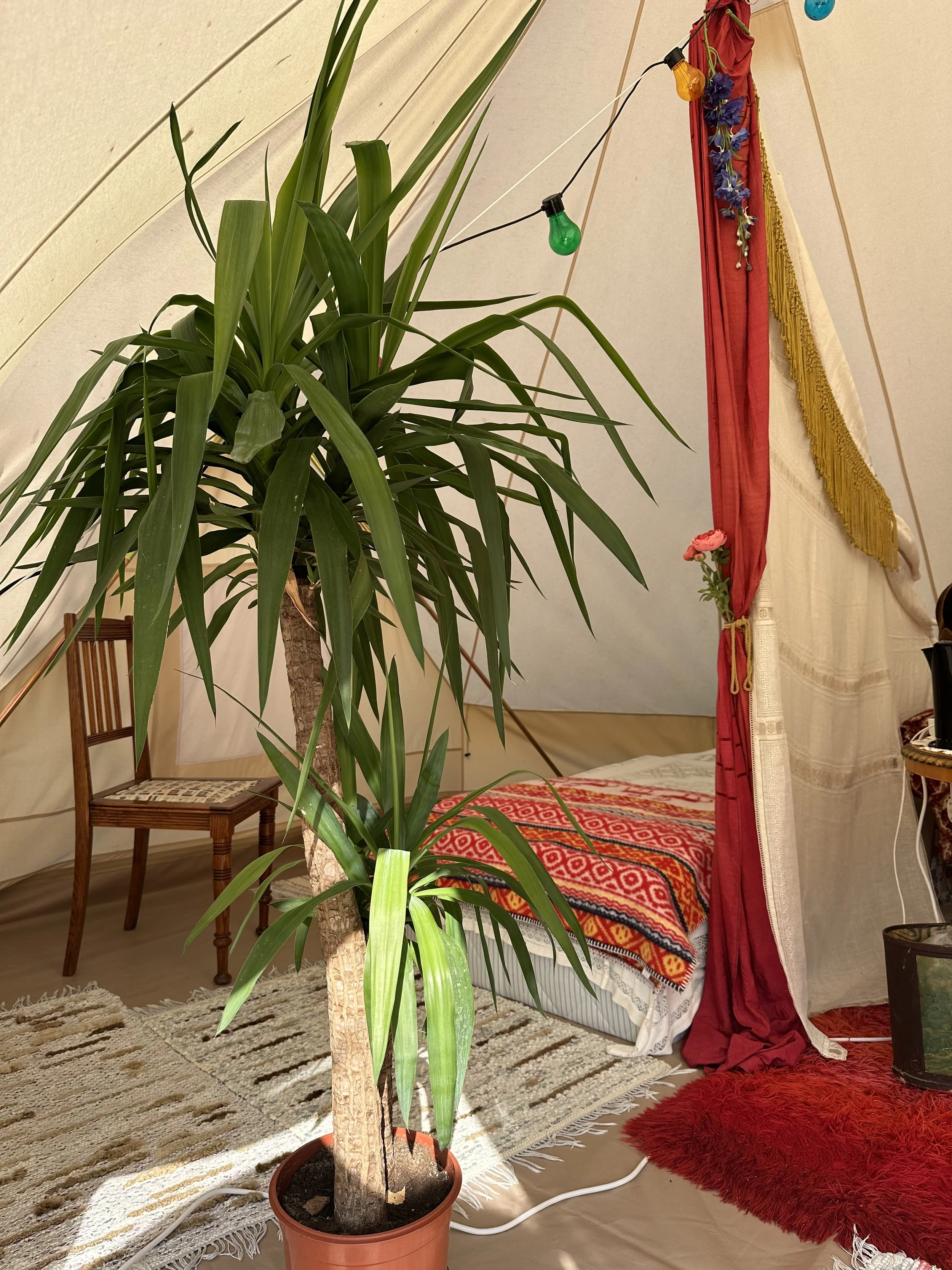 Hemlagad säsongsbetonad vegetarisk mat och en skön säng i eget eller delat rum, utan extra kostnad, är din om du vill! Från hjärtat välkommen. Sängplatser är fördelade i glamping-tält, boningshus, samt gästhus. Vi delar de bekvämligheter som finns då detta framför allt är ett hem, i boningshuset finns två badrum, på gården finns extra dass och utedusch, frivillig enkelhet och välkomnande gästfrihet är något vår värld behöver mer av och vi vill dela detta med er. Låt oss leva nu, så som det är, tillsammans.